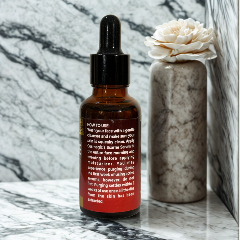 Reveal smoother, clearer, and more even-toned skin with Scarne Serum — your targeted solution for acne scars, open pores, and uneven skin tone. This advanced formula works to fade the appearance of scars, tighten enlarged pores, and restore skin’s natural radiance. Lightweight and fast-absorbing, Scarne Serum penetrates deep into the skin, delivering active ingredients that promote renewal and improve texture, giving you a refined, healthy-looking complexion.